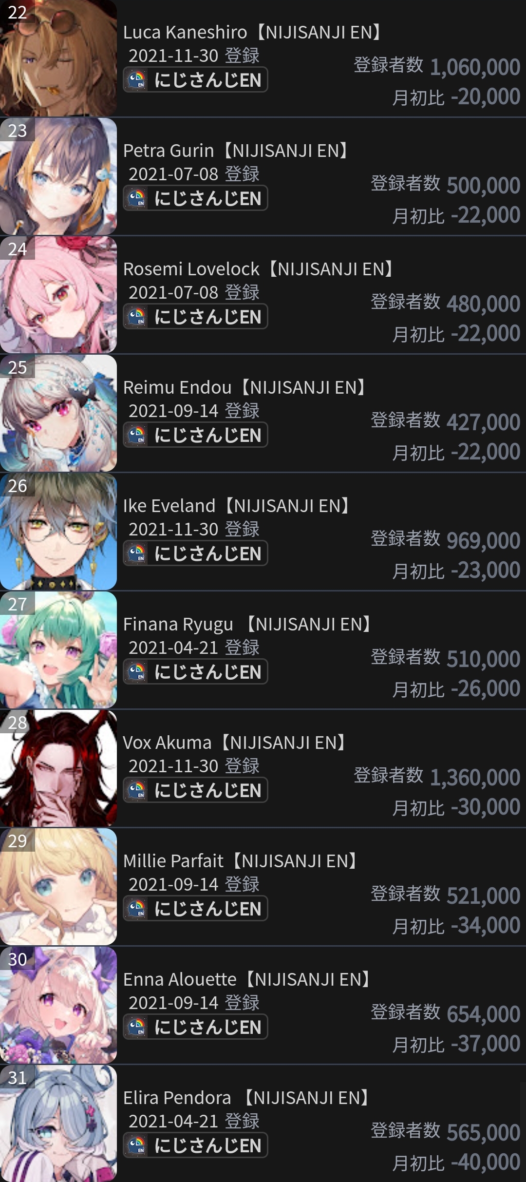 13) Elira (Nijisanji) - 61,224 - A Message from NIJISANJI EN