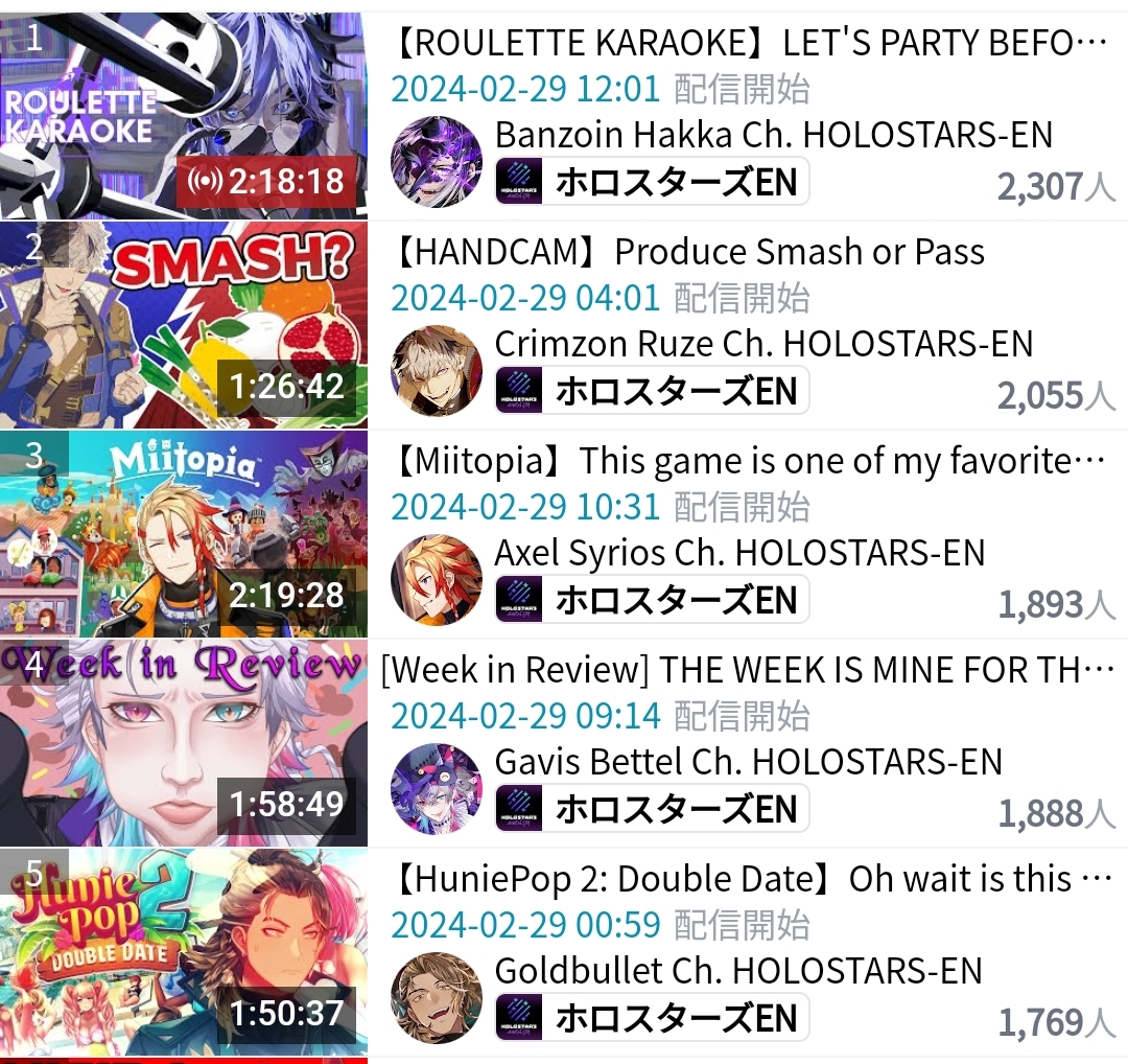 15) Mumei (Hololive) - 43,311 - Valentine's Day One Hour Hangout