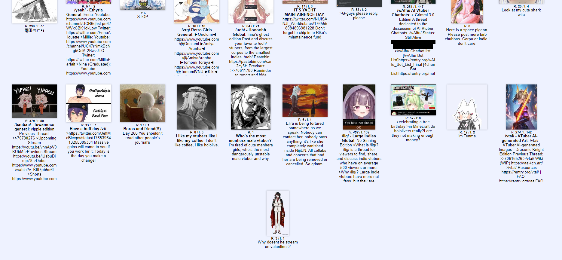 /lig/ is a thread for viewers to find, share, and discuss indie vtubers who have on average 500 viewers or more.