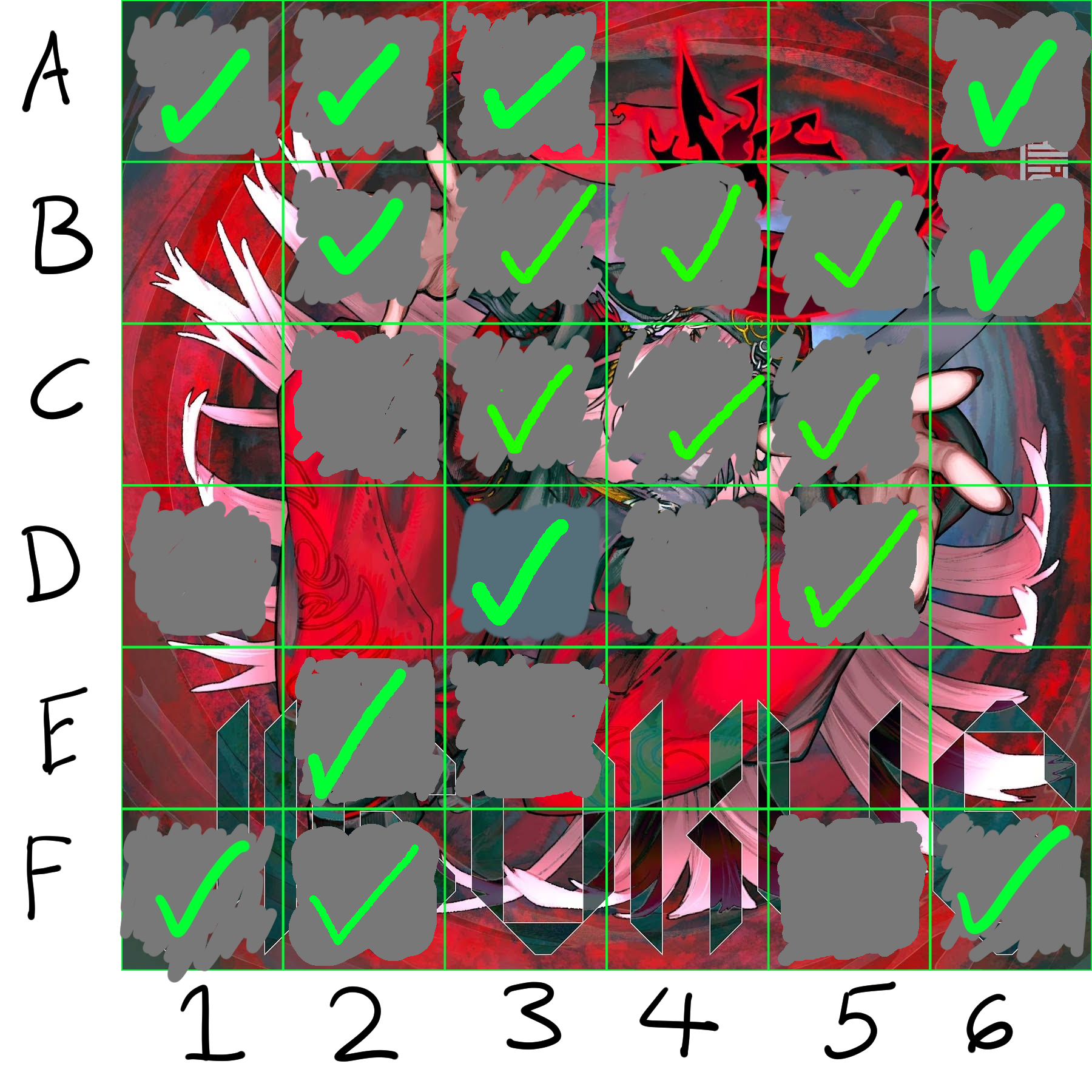 >Submit a redrawing of picrelatedThis will be used as the thumbnail and main art of the MV. Please reply to this post with your selected grid section and I will mark off what has been chosen. Feel free to do more than 1 grid section, though I think it would be better to select ones that aren't touching.