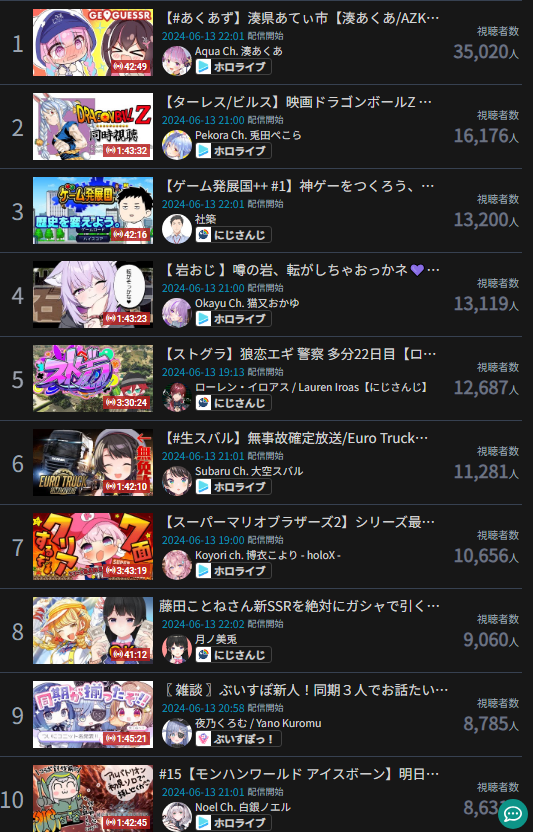 10) Gura (Hololive) - 26,699 - Mario Party w/ Amelia