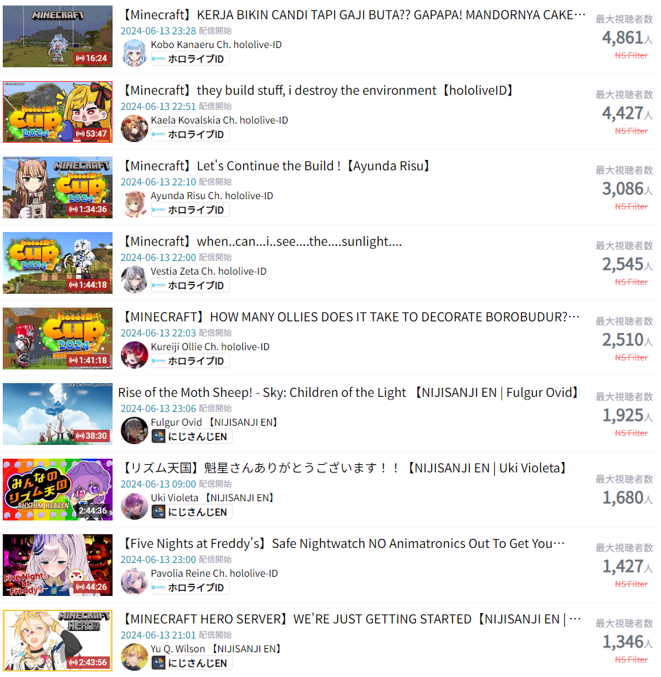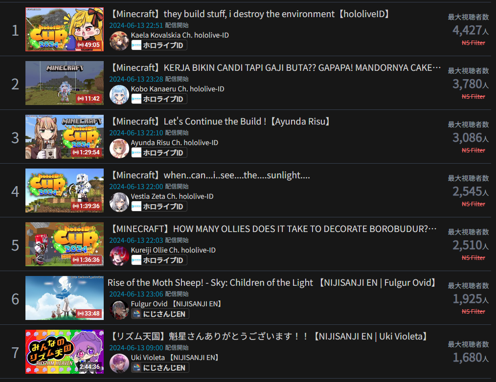 8) Hololive EN (Hololive) - 36,376 - HoloENquiz + Concert Announcement