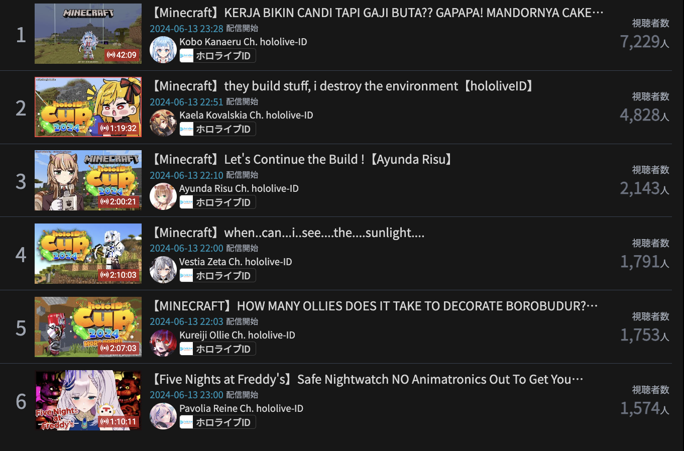 6) FuwaMoco (Hololive) - 16,203 - Don't Scream