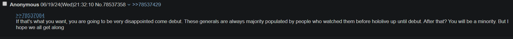 >>78640676>>78641123>>78641075>>78641183It's not about who's able and unable to, it's about who's able to and knows someone that is what Cover considers to be a "good" candidate. Most of Kronii's would-be nepohires are very much not into anything resembling idols, and she's not eager to nepo in any homos anymore. Most of Mori's friends either abandoned her, are also not into idols, or are big enough vtubers themselves and wouldn't go for Hololive. With Ollie, the kinds of people she would nepohire in are just so much more broad. Because she's a big homocollaber, she's fine with and even wants to nepo in males. And these are males that don't have to necessarily be into idols, since the EN branch of homos is so far gone at this point that it makes the JP homos look like actual idols (they aren't), and Hololive look like the world's best on the brightest stage of all.