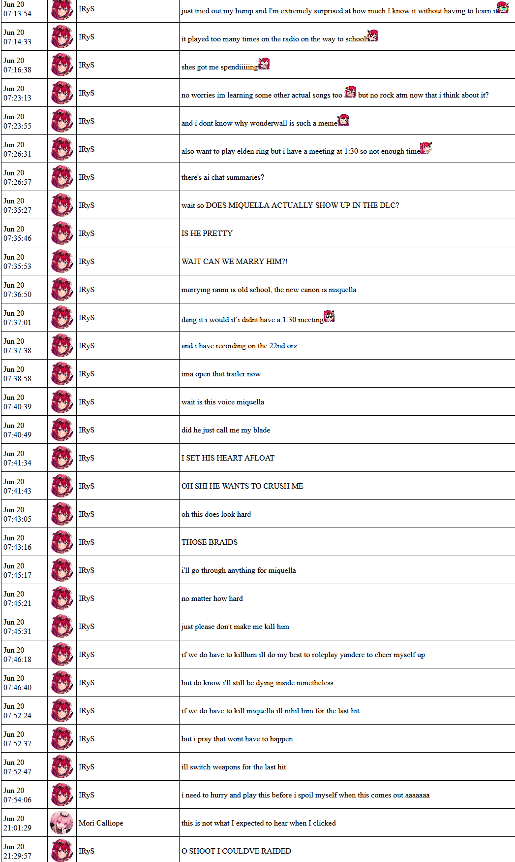>IRyS Status/ Milestones / Karaoke / SCs