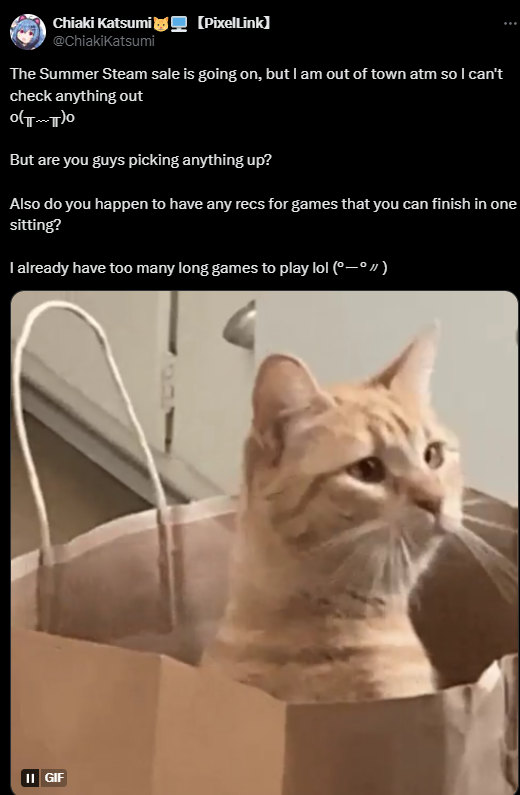 【Chiaki Katsumi】 Prudish gamer, longform playthroughs with pre-game zatsu, variety streams.