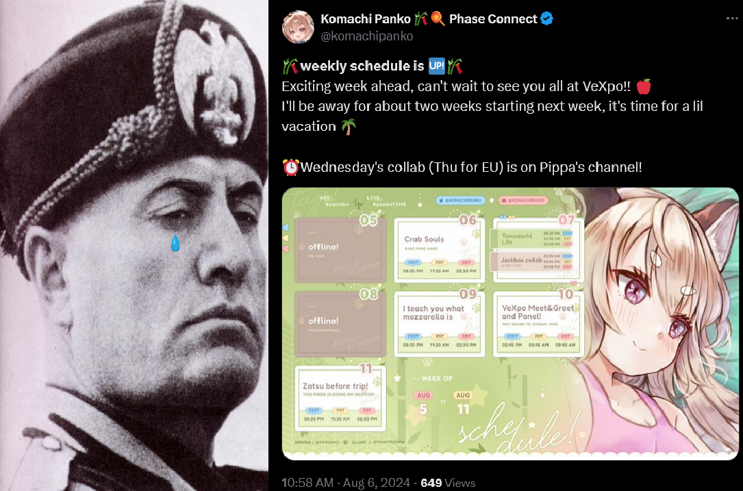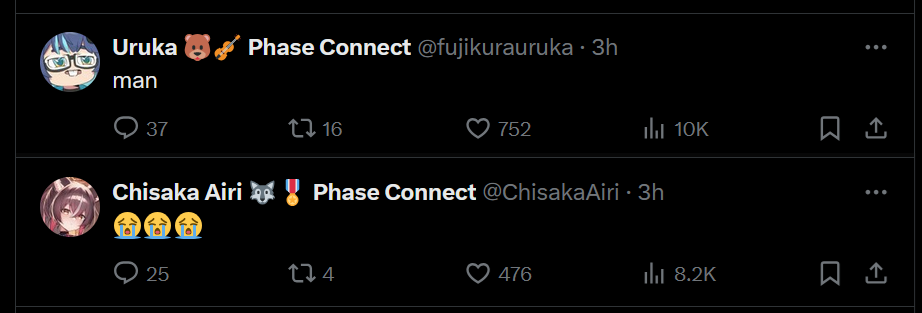 [378 / 98 / 1] 63KiB, 1280x720, eepya.jpg View SameGoogleImgOpsiqdbSauceNAO Thread Reply Original Report Media View Same Google ImgOps iqdb SauceNAO Download /pcg/ - Phase Connect General Anonymous Tue 06 Aug 2024 15:52:38 No.82338779 View ViewReplyOriginalReport Quoted By: ▼Phase Connect LinksOfficial Website: https://phase-connect.comOfficial Schedule: https://schedule.phase-connect.comOfficial Twitter: https://twitter.com/PhaseConnect | https://twitter.com/PhaseConnectJPOfficial Character References: https://rentry.org/pcgreferencesOfficial Twitch Archive Channels: https://rentry.org/pcgtwitcharchiveUnofficial Phase Connect Archives: https://rentry.org/pcgunofficialarchive––––––––––––––––––––––––––––––––––▼Lia 鈴香アシェリア (EN)https://twitter.com/rinkouashelia | https://youtube.com/RinkouAshelia | https://twitch.tv/asheliarinkou▼Utatane Nasa 転寝ナサ (JP)https://twitter.com/UtataneNasa | https://youtube.com/UtataneNasa | https://twitch.tv/utatanenasa▼Hakushika Iori 白鹿いおり (JP + EN)https://twitter.com/hakushikaiori | https://youtube.com/HakushikaIori | https://twitch.tv/iorihakushika▼Fujikura Uruka 藤倉ウルカ (EN)https://twitter.com/fujikurauruka | https://youtube.com/FujikuraUruka | https://twitch.tv/fujikurauruka▼Shisui Michiru 紫翠みちる (JP)https://twitter.com/shisuimichiru | https://youtube.com/ShisuiMichiru | https://twitch.tv/michiru_shisui▼Tenma Maemi 天満マエミ (EN + JP)https://twitter.com/tenmamaemi | https://youtube.com/TenmaMaemi | https://twitch.tv/tenma▼Pipkin Pippa ピップキン・ピッパ (EN)https://twitter.com/pipkinpippa | https://youtube.com/PipkinPippa | https://twitch.tv/pippa––––––––––––––––––––––––––––––––––▼Kaneko Lumi 金子瑠美 (EN)https://twitter.com/kaneko_lumi | https://youtube.com/KanekoLumi | https://twitch.tv/kanekolumi▼Fuura Yuri ふうら百合 (EN) [Terminated]Archive: https://youtube.com/@TheNationalFuuraYuriArchive▼Dizzy Dokuro 髑髏ディズィー (EN)https://twitter.com/dizzydokuro | https://youtube.com/@dizzydokuro | https://twitch.tv/dizzydokuro▼Jelly Hoshiumi 星海ジェリー (EN)https://twitter.com/jellyhoshiumi | https://youtube.com/@jellyhoshiumi | https://twitch.tv/jellyhoshiumi▼Ember Amane 天音エンバー (EN)https://twitter.com/emberamane | https://youtube.com/@EmberAmane | https://twitch.tv/emberamane––––––––––––––––––––––––––––––––––▼Remilia Nephys レミリア・ネフィス (EN)https://twitter.com/Remilia_Nephys | https://youtube.com/RemiliaNephys | https://twitch.tv/remilianephys▼Chisaka Airi 千坂アイリ (EN)https://twitter.com/ChisakaAiri | https://youtube.com/ChisakaAiri | https://twitch.tv/chisakaairi▼Amanogawa Shiina 天ノ川しいな (EN)https://twitter.com/AmanogawaShiina | https://youtube.com/AmanogawaShiina | https://twitch.tv/amanogawashiina▼Himemiya Rie 姫宮りえ (EN)https://twitter.com/HimemiyaRie | https://youtube.com/HimemiyaRie | https://twitch.tv/himemiyarie▼Erina Makina エリナ・マキナ (EN)https://twitter.com/ErinaMakina | https://youtube.com/ErinaMakina | https://twitch.tv/erinamakina▼Komachi Panko 小町ぱんこ (EN)https://twitter.com/komachipanko | https://youtube.com/KomachiPanko | https://twitch.tv/komachipanko––––––––––––––––––––––––––––––––––▼ Runie Ruse ルニ・ルーズ (EN)https://twitter.com/RunieRuse | https://youtube.com/@RunieRuse | https://twitch.tv/RunieRuse▼ Eimi Isami 勇エイミ (EN)https://twitter.com/eimiisami | https://youtube.com/@eimiisami | https://twitch.tv/eimiisami▼ Muu Muyu むうむゆ (EN)https://twitter.com/Muu_Muyu | https://youtube.com/@MuuMuyu | https://twitch.tv/MuuMuyu▼ Hikanari Hina 光鳴ひな (EN)https://twitter.com/HikanariHina | https://youtube.com/@HikanariHina | https://twitch.tv/HikanariHina▼ Saya Sairroxs サヤ・サイロクサス (EN)https://twitter.com/sayasairroxs | https://youtube.com/@sayasairroxs | https://twitch.tv/sayasairroxs––––––––––––––––––––––––––––––––––▼ Kannagi Loki 巫ロキ (JP)https://twitter.com/kannagiloki | https://youtube.com/@kannagiloki | https://twitch.tv/▼ Kokoromo Memory 恋衣めもり (JP)https://twitter.com/kokoromomemory | https://youtube.com/@kokoromomemory_ | https://twitch.tv/kokoromomemory▼ Gram Pico 倉夢ぴこ (JP)https://twitter.com/grampico_ | https://youtube.com/@grampico | https://twitch.tv/▼ Ayase Yuu 絢世ユウ (JP)https://twitter.com/ayaseyuuu | https://youtube.com/@ayaseyuu | https://twitch.tv/ayaseyuu_▼ Kaminari Clara 歌美鳴クララ (EN + JP)https://twitter.com/kaminariclara_ | https://youtube.com/@kaminariclara | https://twitch.tv/kaminariclaraPrevious Thread: >>82325178