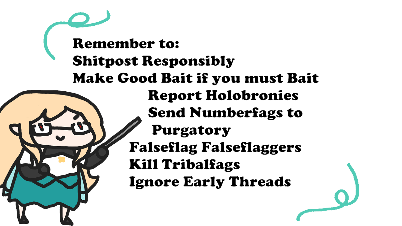Reminder to ignore bait, shitposting, samefags, discordfags, numberfags, tribalfags, and falseflaggers.
