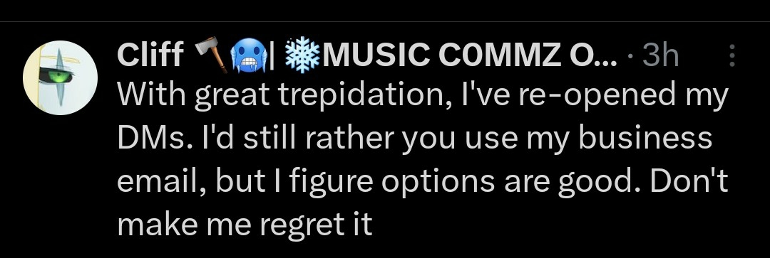 >Post in case of Twitter/Discord drama: