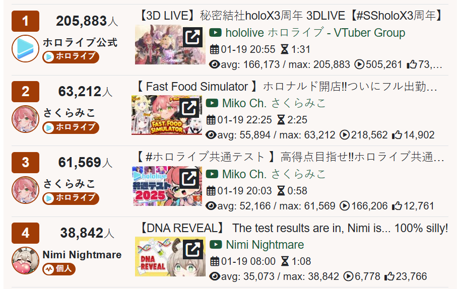 >EN GOLDS FOR JANUARY 20251) Cecilia (Hololive) - 32,053 - New Year's Party w/ Fauna, Mumei