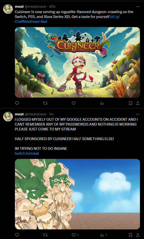 https://www.twitch.tv/meat Meat is live with Cuisineer