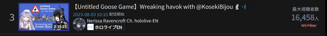 3) Gura (Hololive) - 23,062 - Keep Talking and Nobody Explodes w/ Cecilia