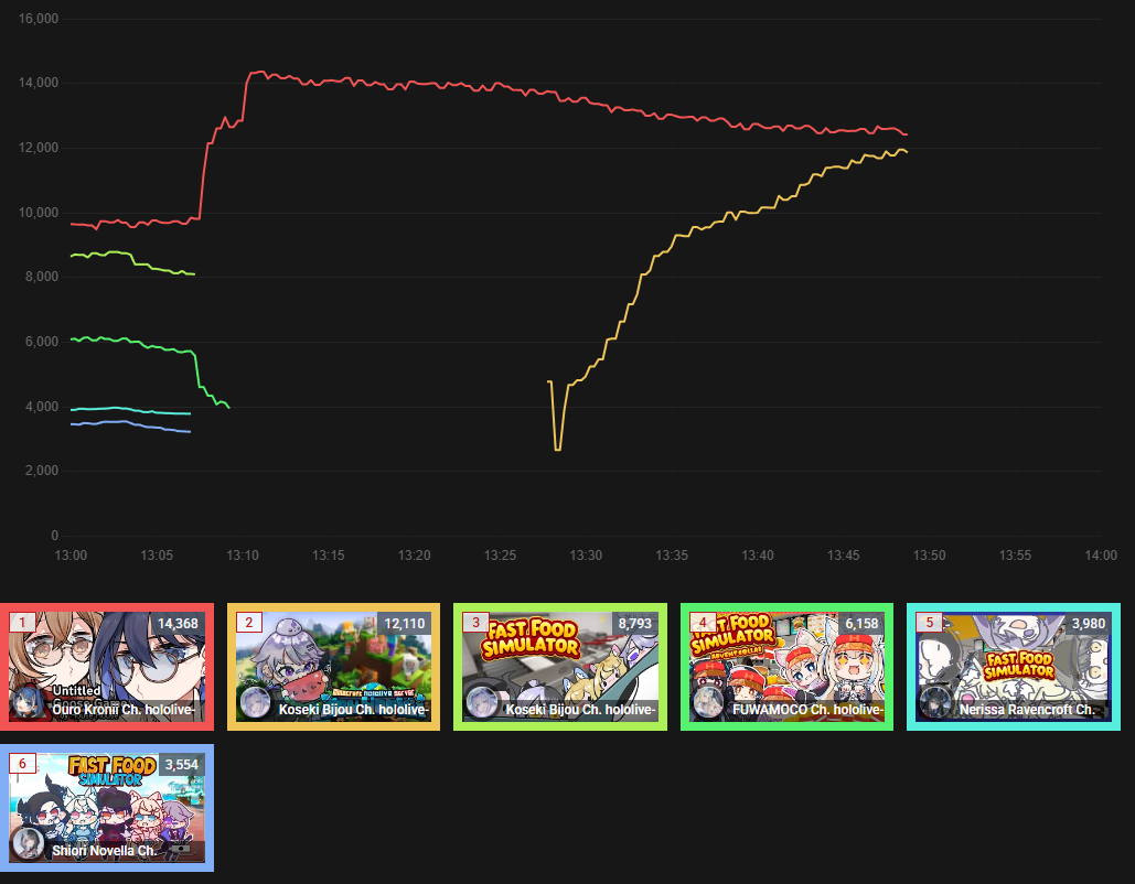 7) Cecilia (Hololive) - 13,295 - Minecraft w/ Raora