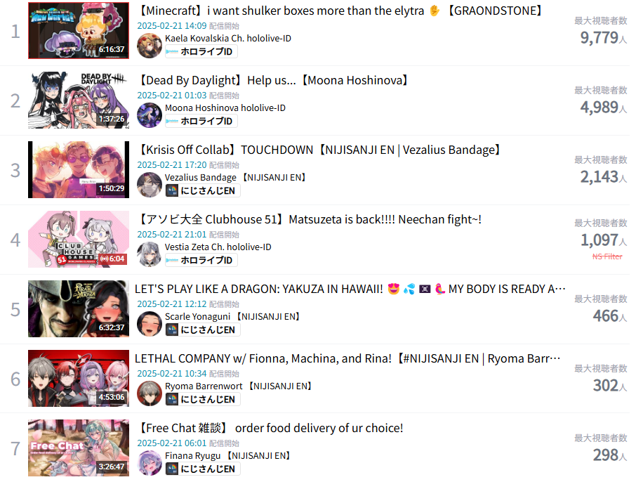 12) Kronii (Hololive) - 14,013 - Minecraft