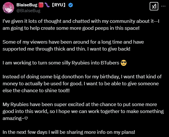 BlaiseBug (Shinryu)(RYU): Ironic weeb, action games, Nier, cosplay, emotional. No streams until her birthday