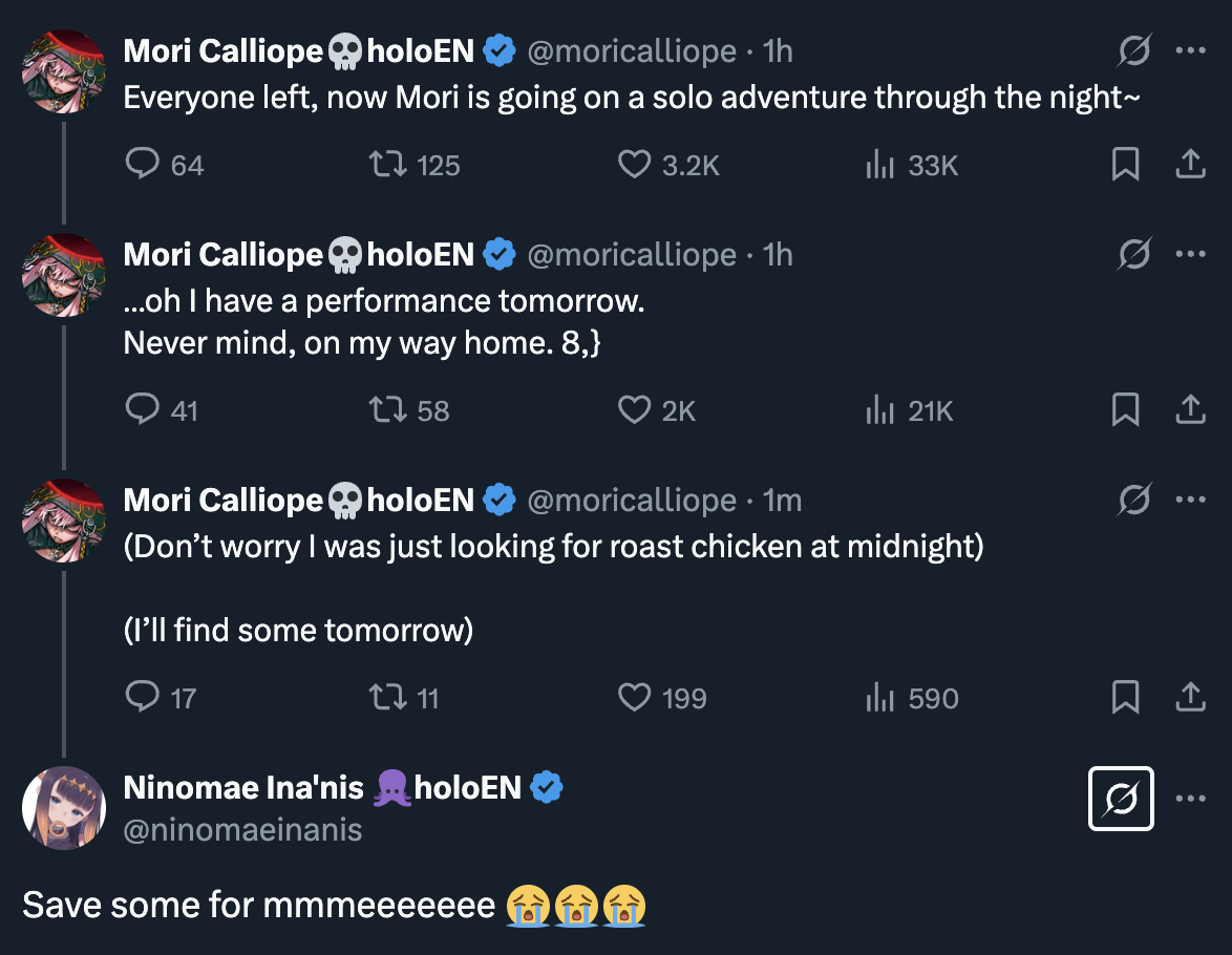 >>97299249>so why is she not Tako-fied then?Since debut her "tako" parts were always because of AO-chan's influence being impressed onto the world through her.
