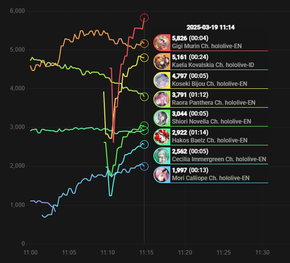11) Raora (Hololive) - 10,719 - Eating EU Snacks Offcollab w/ Kiara