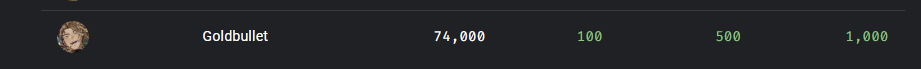 >EN GOLDS FOR MARCH 20251) Bijou (Hololive) - 16,359 - Monster Hunter Wilds w/ Gigi, Ina, Raora