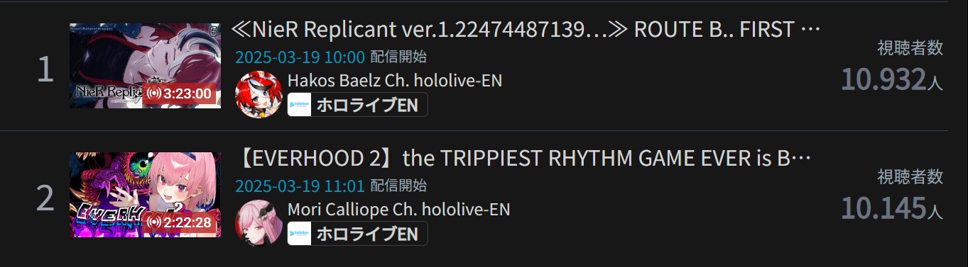 10) Bijou (Hololive) - 19,622 - Monster Hunter Wilds & Post-Fes Talk
