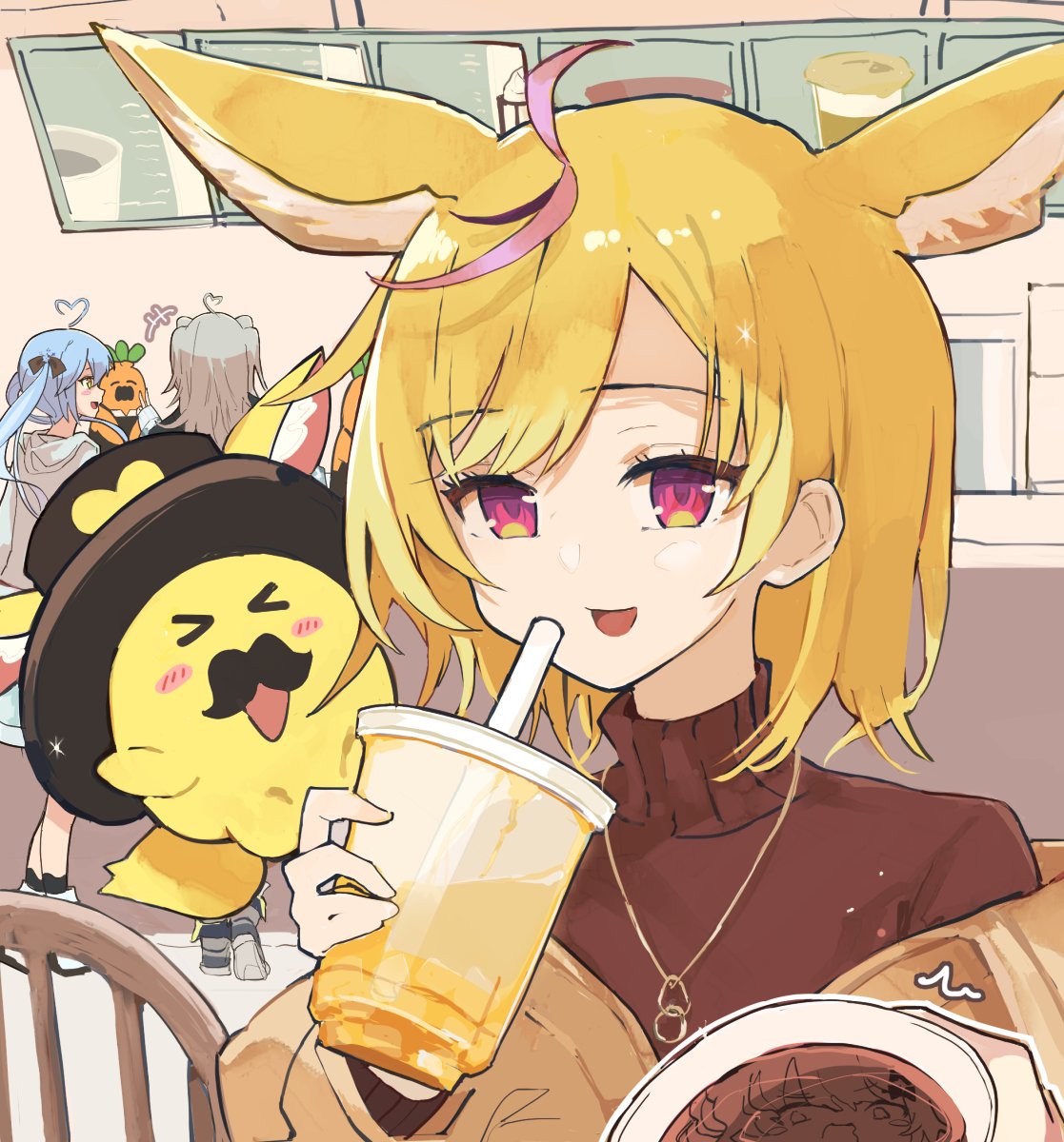 A girl who came from another world in order to become an idol. She loves singing and dancing, and drawing. She is training hard every day to become someone loved by many.