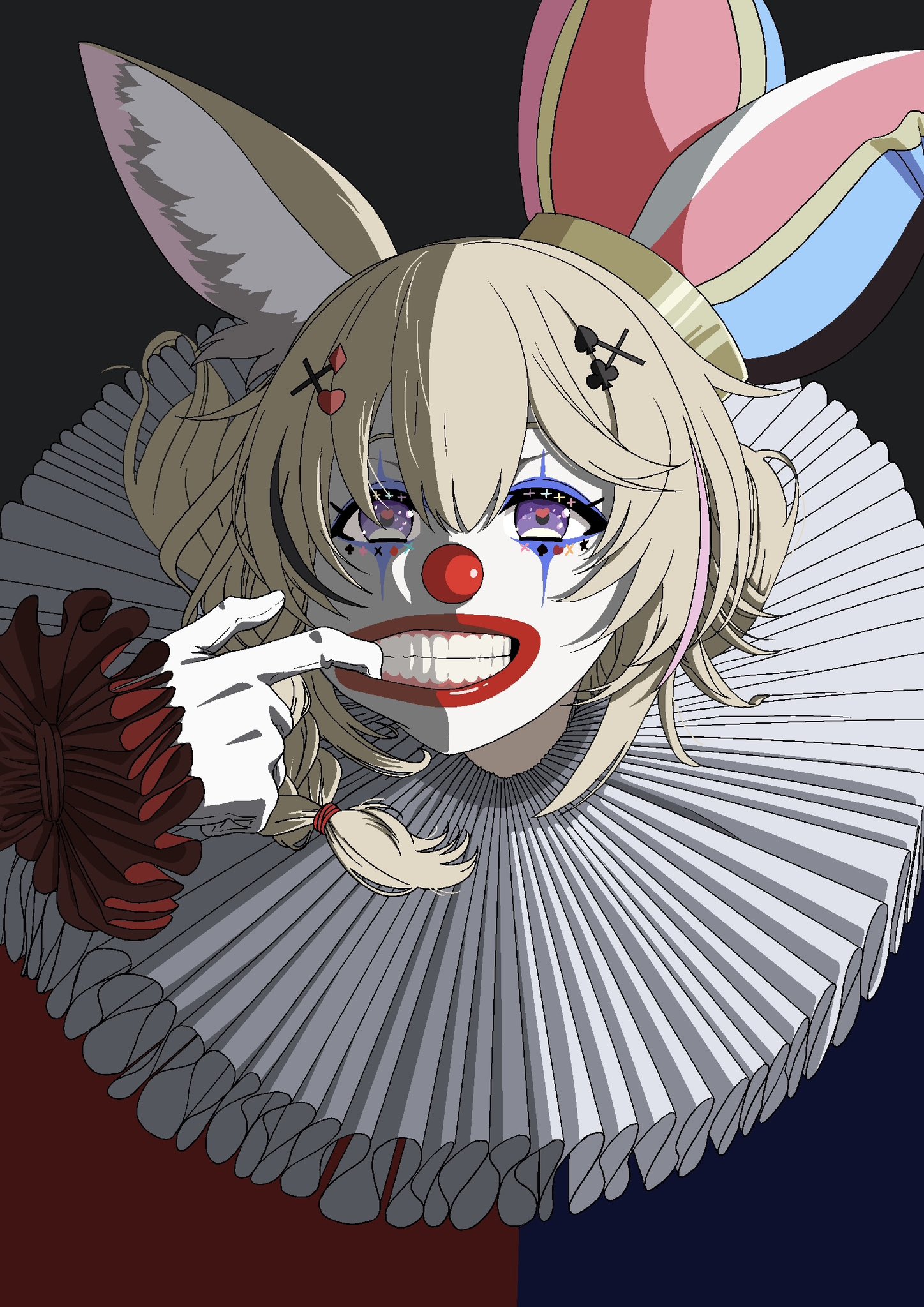 A circus performer who joined hololive in hopes of becoming the ringmaster of the VTuber world. She enjoys wowing audiences with acrobatics, and she lives by the words, "When you've decided you're gonna do something, follow through!" Her natural charm glosses over her occasional mess-ups. Her sworn nemesis is 低気圧