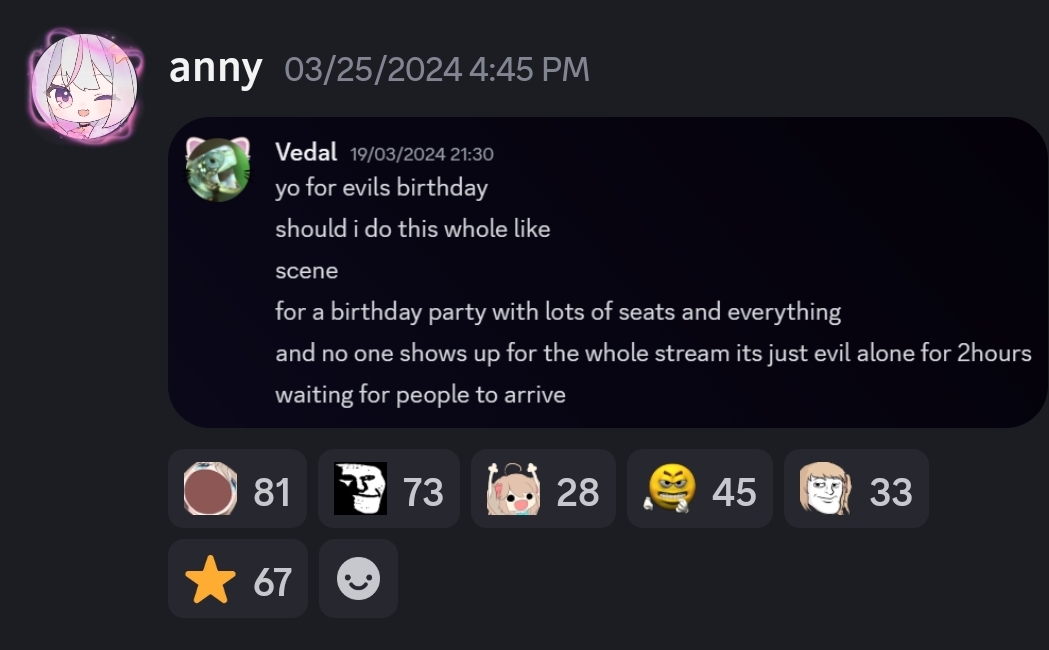 Neuro-sama is a neural network created by Vedal in 2018 for the purpose of learning to play osu! In December 2022 Vedal revived the project with the addition of a large language model, a TTS software and a Live2D model, which allow Neuro-sama to interact with her chat as a VTuber. Since then, she has been entertaining the chat with responses and unhinged rants nearly daily, as well as learning new skills such as singing, playing other games, and collaborating with other VTubers. Join /swarm/ today and welcome our new AI overlord!