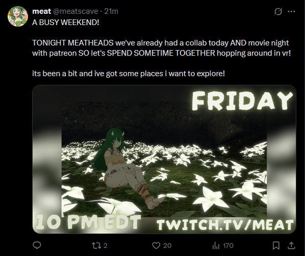 Large indie vtubers have more net fans, but they are outnumbered by 2views by the thousands. This is a thread for the VIP, regardless of what language they stream on.