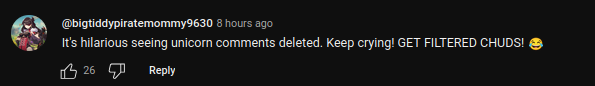 the way people respond to unicorsn is much in the same way progressive types talk about men in general - that they are problematic, deranged and evil by nature and are this way for no apparent reason at all, that their natural impulses are all deranged and should be shamed or kept in check and suppressed. This is why there is such overlap between these type of twitterfags and pro-holostar collab and why they interchangeably use words like chud and incel for unicorns. Anti-unicorn types react to unicorns in the exact same way that progressives do to men in general.