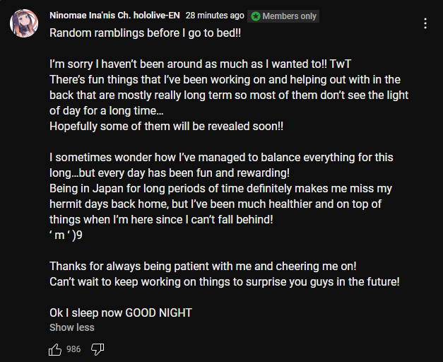 >>97982520It's bizarre because I feel like Shiori talked with her audience a whole ton. A week ago we had a confessional stream that touched on grief and substance abuse.