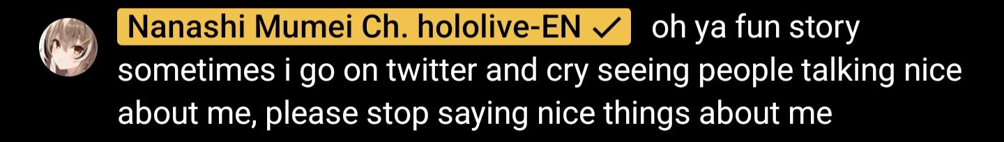 Ame’s creativity and kindness was one of the first things I noticed and was comforted by when I joined HoloEN and I believe HoloEN wouldn’t have become such a great environment for us talents without her (Heart) Thank you so so much Ame for everything and you will always be the greatest and cutest detective there is…!! (magnifying_glass)
