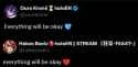No messages but cried on stream.