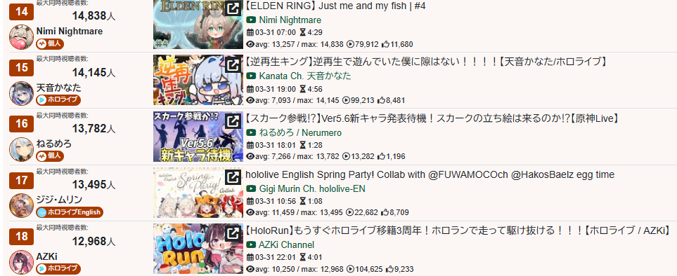 >>98503854>EN COPE GOLDS FOR MARCH 20251) Raora (Hololive) - 4.515 - Monster Hunter Wilds [23]