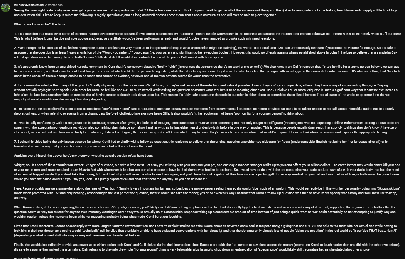 Kroniis "question" that she asks everyone confirms she's holoEN's sex pest
