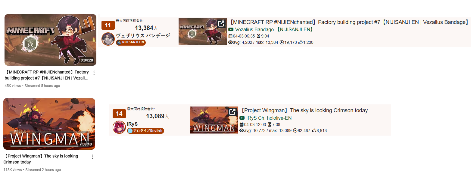 >EN GOLDS FOR MARCH 20251) Mumei (Hololive) - 16,248 - Doom Eternal