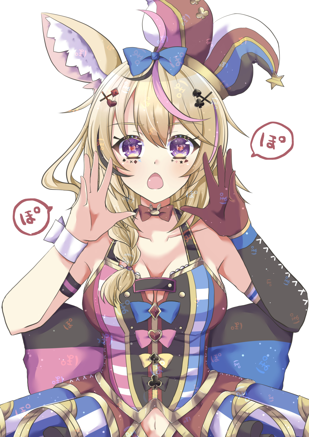 A circus performer who joined hololive in hopes of becoming the ringmaster of the VTuber world. She enjoys wowing audiences with acrobatics, and she lives by the words, "When you've decided you're gonna do something, follow through!" Her natural charm glosses over her occasional mess-ups. Her sworn nemesis is 低気圧