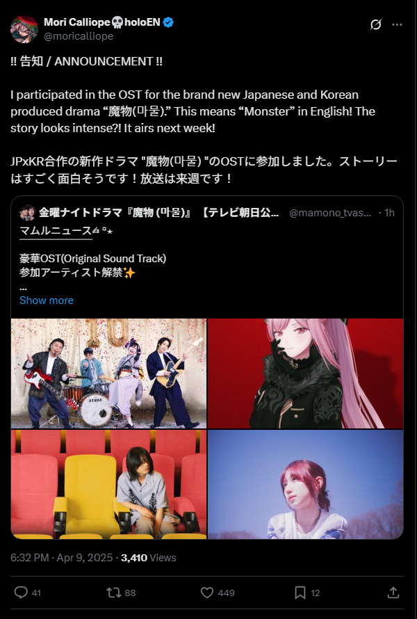 [14 / 4 / ?] 288KiB, 600x890, 1744254356223.png View SameGoogleImgOpsiqdbSauceNAO Thread Reply Original Report Media View Same Google ImgOps iqdb SauceNAO Download Anonymous Thu 10 Apr 2025 03:06:08 No.99083008 View ViewReplyOriginalReport Quoted By: >>99083046 >>99083097 >>99086531 >>99096828 Mori getting involved in more dramashttps://x.com/moricalliope/status/1910143747746398620