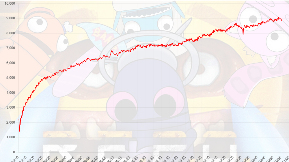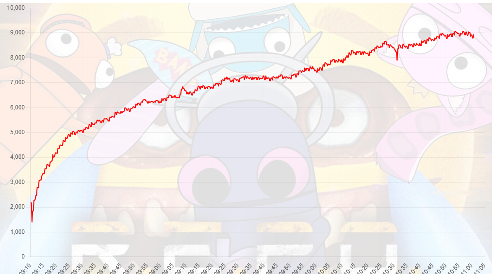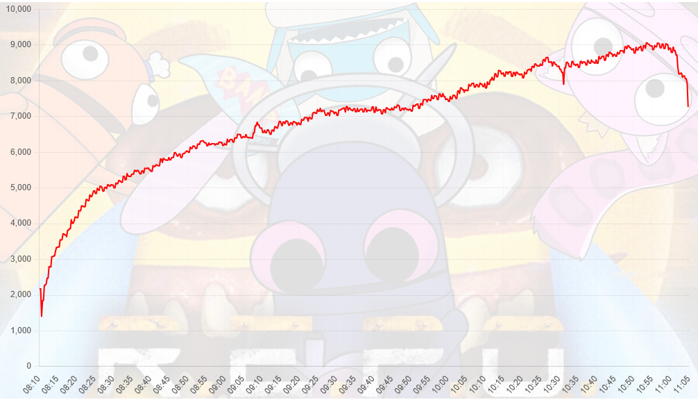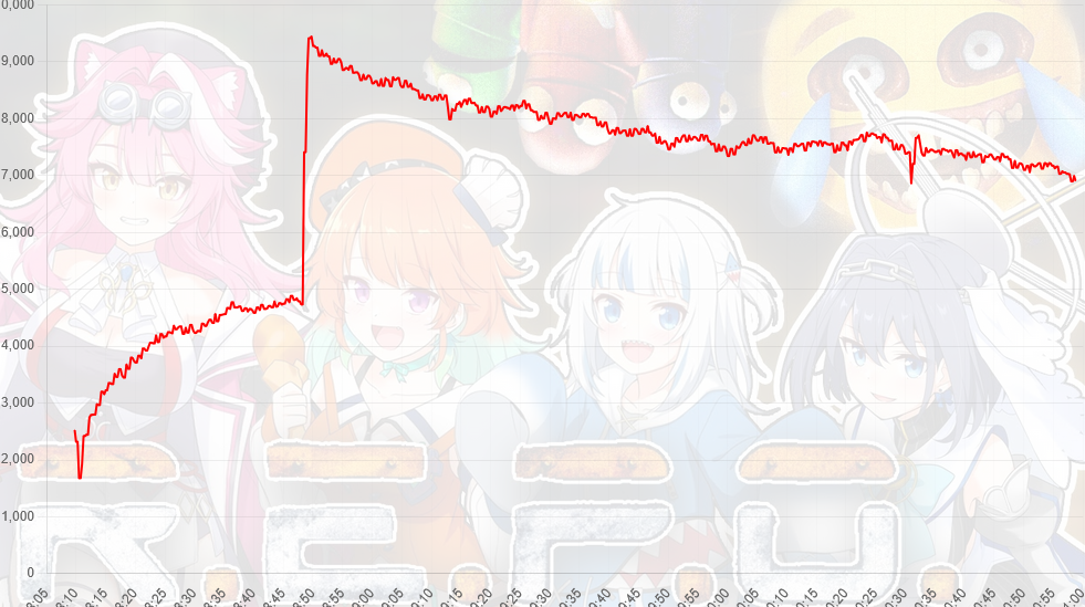 Sure, the raid bled from 9.4k to 7.5k in the span of an hour, but then it plateaued and stayed around 7.5k for the next hour. At that point, you can't really tell if it's the raid viewers dropping off or just the original viewers tuning out.