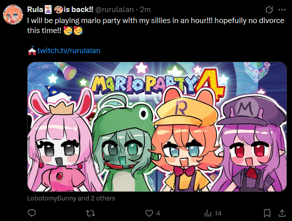 Large indie vtubers have more net fans, but they are outnumbered by 2views by the thousands. This is a thread for the VIP, regardless of what language they stream on.
