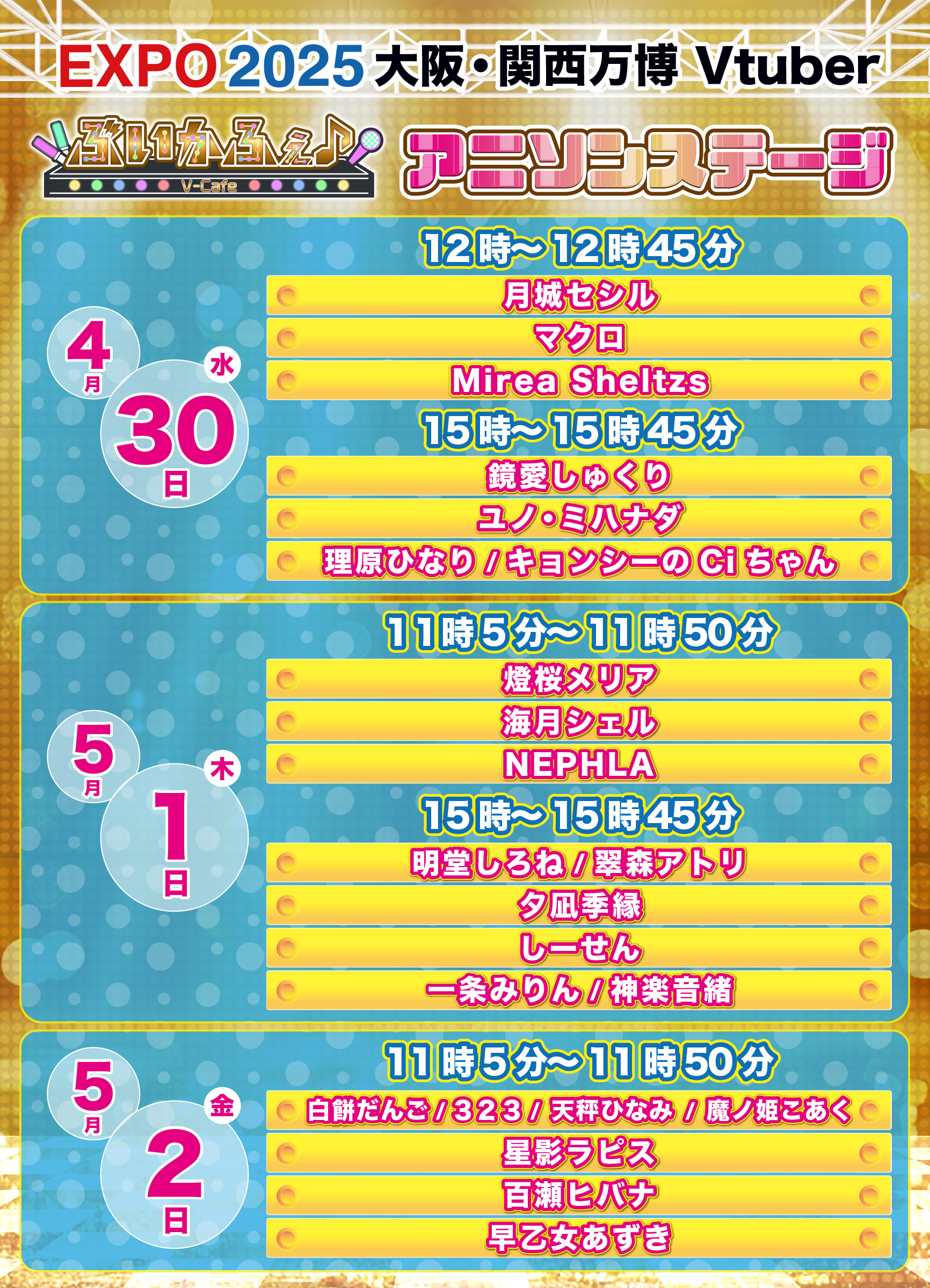 10/18: にじさんじ WORLD TOUR 2025 Singin’ in the Rainbow! Hiroshima Performance https://dwango-ticket.jp/project/GAh5hxbfiB