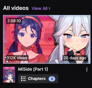 Large indie vtubers have more net fans, but they are outnumbered by 2views by the thousands. This is a thread for the VIP, regardless of what language they stream on.