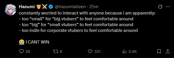 Large indie vtubers have more net fans, but they are outnumbered by 2views by the thousands. This is a thread for the VIP, regardless of what language they stream on.