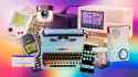 Most of the rest would have been made possibly with Adobe Photoshop, or more likely with Adobe Illustrator, or even both of those programs, using a combination of random lines, shapes, fills, gradients, filter and layer effects, and plenty of (semi-)transparent layers.