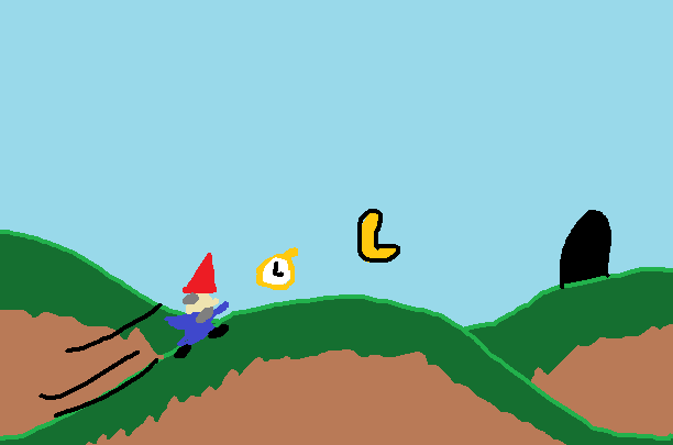 It's a platformer which you play as a VERY fast gnome, you collect letters and clocks before the time runs out, once you collect the letters you have to leave the level through a door