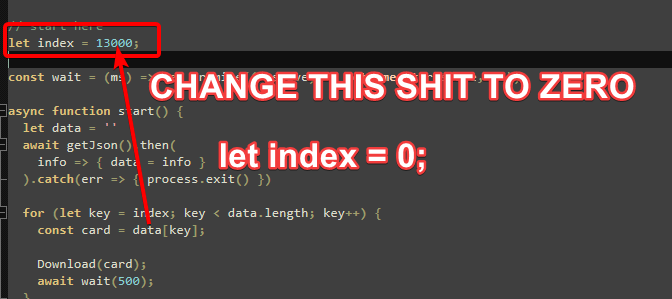 >let index = 13000;change it to